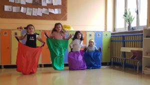 Dopo aver ascoltato due bellissime canzoni, è iniziata la grande festa con tanti giochi divertenti: “Fidati di me”, “Santo acchiappa colore”, “La coda degli angeli e dei diavoli” e “Il salto del santo con il sacco”.